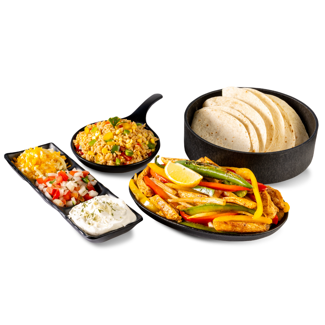 Served with Mexican Rice, Pico de Gallo, Cheddar/ Mozzarella Cheese Mix, Sour Cream, and warm Flour Tortilla.